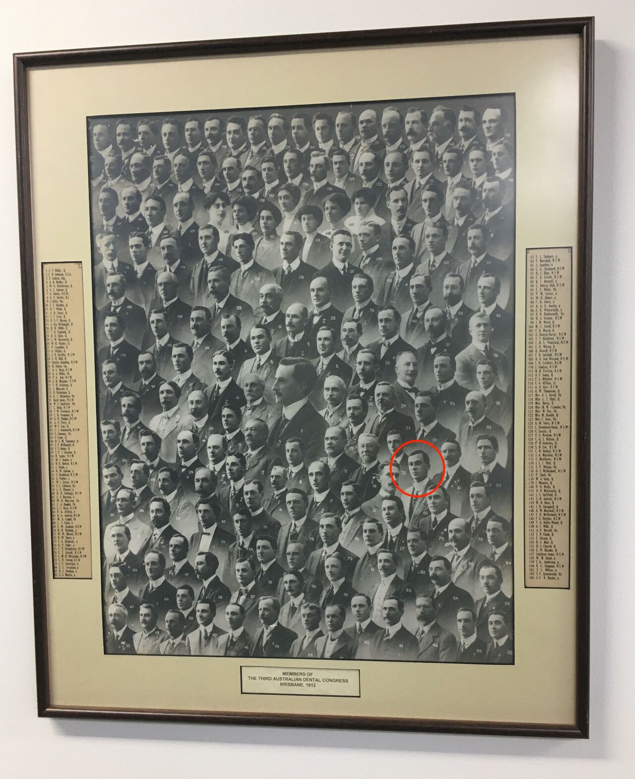 The 8th July 1912 saw the Third Australian Dental Congress held in Brisbane. Ernest attended the Congress and is seen in a group portrait which hangs today in the Australian Dental Association Brisbane Rooms. In the Report for this Congress, Ernest was appointed Chairman for 'Operative Dentistry' presentations for the Fourth Congress which was to be held in Adelaide in 1921. (Also, listed in this report is Miss Martha Burns, who is named on the Honour Boards, is a fellow dentist, congress attendee and member of the then Odonatological Society.)