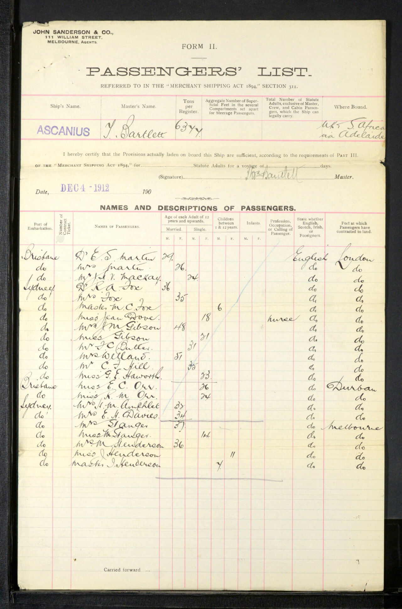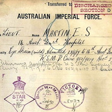 On 11 July 1917, Ernest embarked on the A15 ‘Port Sydney’ at Cairo and returned to Melbourne, Australia for six months “change”. After six months he was still suffering nervous exhaustion and was struck off strength on 27 July 1917. On 4 September 1917, the Medical Board again met regarding the present state of health of Lieutenant E. S. Martin with Lieut. Colonel J. Espie Dods presiding. (Dr Espie Dods was also Ernest’s brother-in-law.)