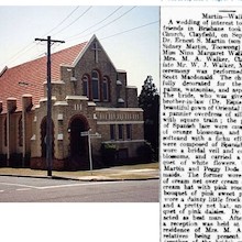 "Dr Ernest S. Martin (son of Mr & Mrs Sidney Martin, Toowong) was married to Miss Nina Margaret Walker (daughter of Mrs M. A. Walker, Clayfield and the late Mr W. J. Walker, Melbourne). The ceremony was performed by the Rev. Scott Macdonald. …The bride, who was given away by her brother-in-law (Dr Espie Dods), wore a beautiful gown of Oriental ivory satin, with pannier overdress of silk crepe, finished with a square train; …Misses Florence Martin and Peggy Dods acted as bridesmaids.”