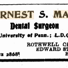 In 1915, an advertisement stating that Ernest was commencing a Dental Practice Partnership in Queen Street, Brisbane appeared in the Brisbane Courier, Saturday 13 February 1915 on page 4 stating: